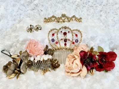 イヤリング、コーム、花の髪飾り、ペイネタ、ティアラまで、手作りで完成させます。