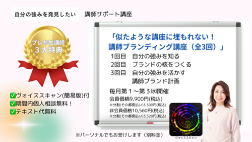 講師サポート講座/講師ブランディング講座【毎週第1~3水曜・全3回・毎月開催】